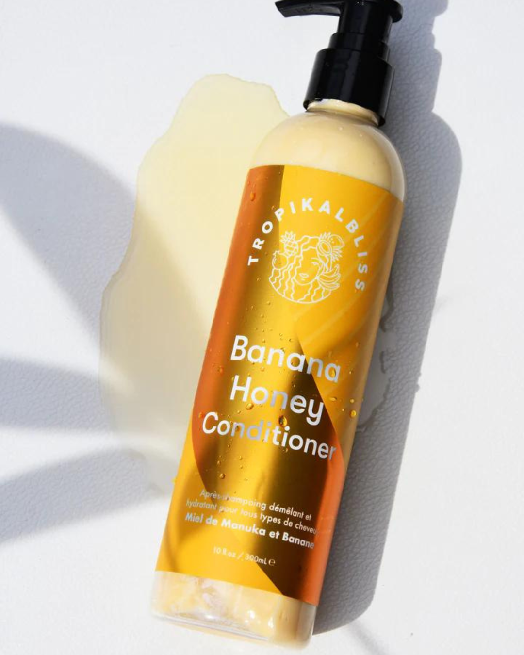 Notre Banana Honey Conditioner soigne et démêle les cheveux ondulés, bouclés, frisés et crépus.