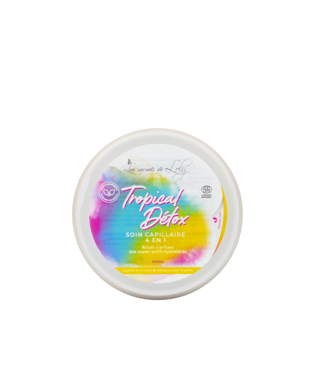 Formulé à 99,6 % d’origine naturelle, le Tropical Détox permet de repartir sur une base saine. Ce produit est un soin purifiant naturel à base de banane, de graines de lin, de graines de chia, de vinaigre d’hibiscus et de kaolin. Il va permettre de combattre les méfaits dûs à la pollution et aux colorations. Il va purifier les cheveux et le cuir chevelu pour redonner vie à vos cheveux naturels. Il convient aux cheveux naturels, colorés, ou en transition.